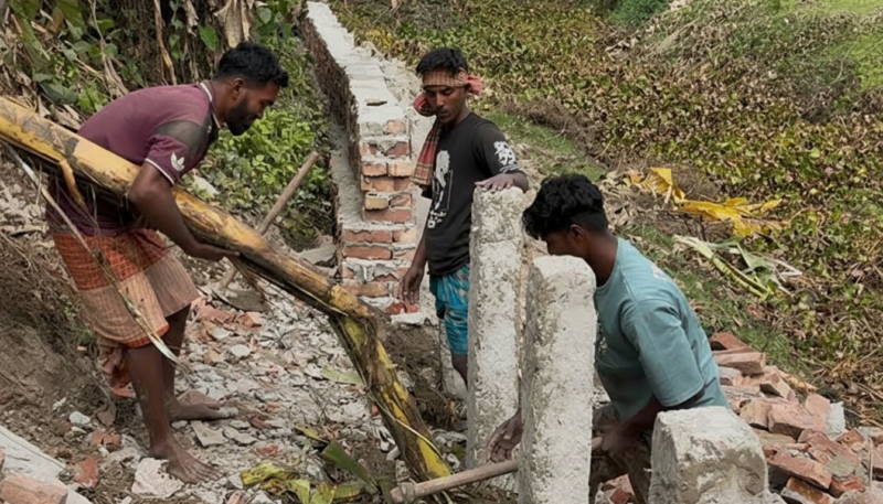 মাদারীপুরে সড়কের গাইডওয়ালে ইটের নিচে কলাগাছ, ক্ষুব্ধ এলাকাবাসী